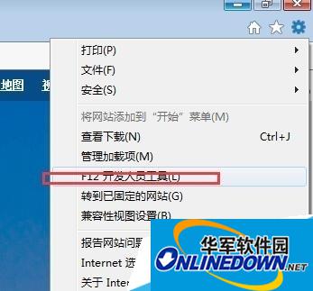 2、然后我们按下键盘上的F12或者单击右侧的齿轮按钮(设置),然后单击“开发人员工具”选项卡。如图2所示