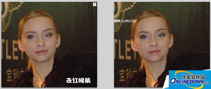 第二步:选择一个适合眼睛大小的消除半径,然后鼠标左键点击红眼,马上就OK