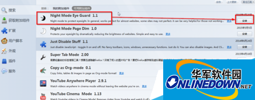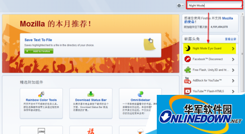 点击进入获取附加组件之后,在附加组件搜索框键入“Night Mode”。这里我们也可以在展露头角里看到这个插件,不过可能时间原因,一段时间之后大家可能就在这找不到了,因此推荐搜索。