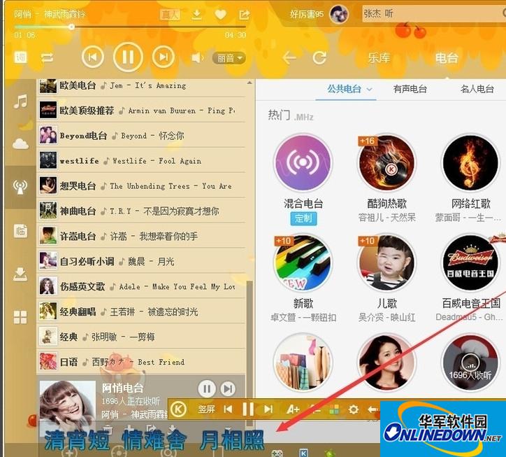 3、将鼠标移至歌词上,使其出现选项