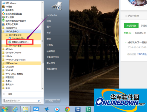 1.我们点开开始菜单,然后在全部任务中,找到【2345安全卫士】,如图示,然后点击【卸载2345安全卫士】。