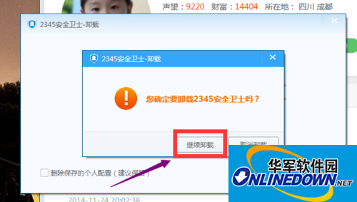 2.这个时候,会弹出一个对话框,让你选择是否卸载,我们点击【继续卸载】,如图示。