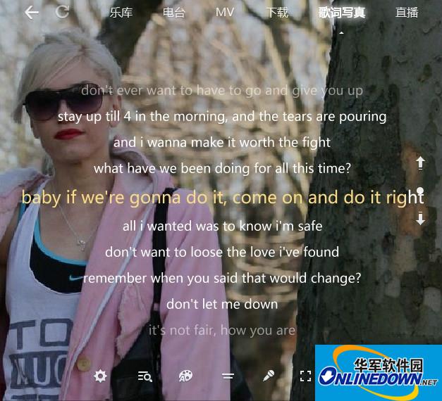 我们在歌词写真中,点击歌词界面下端的“关掉写真” 按钮。