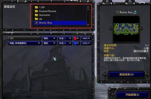 地图选择好后我们点击小三角按钮选择自己和电脑的种族并点击开始游戏,如图所示;