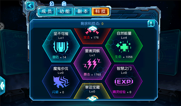 每个公会都会有一个专属的团体,公会成员每天贡献一定资源维护公会,就能获得公会贡献值,贡献值可以兑换相应的道具物品。当公会等级达到一定级别,还可以激活公会技能哦。