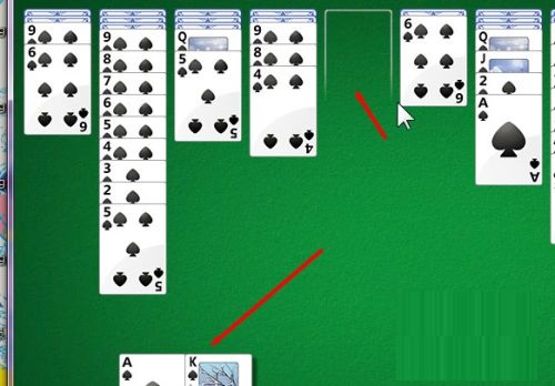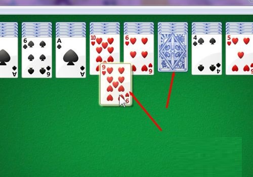 然后根据K到A进行顺序排列,直接鼠标按住牌拖动到另一张牌即可,然后空位就会直接翻转下一张牌