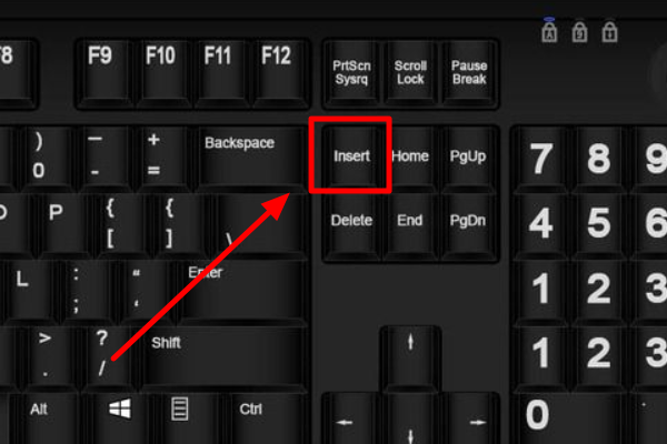 2,当电脑处于输入文字状态的时候,点击一下键盘上右侧的“insert”/“ins”键。