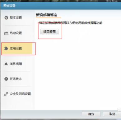 点击之后弹出一个对话框,找到应用设置,然后点击绑定邮箱。