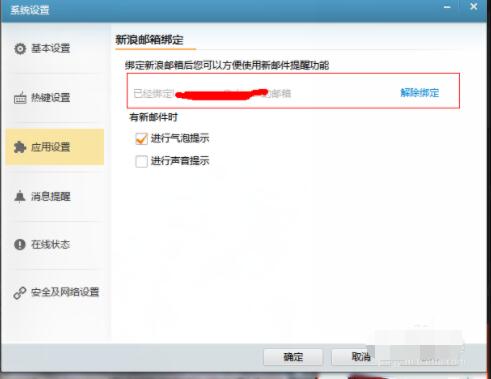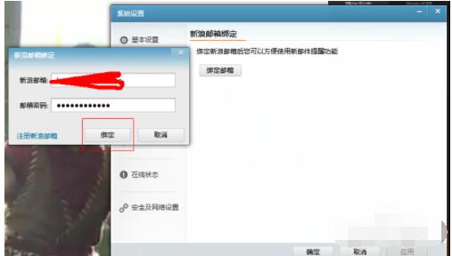 之后会弹出一个对话框,输入新浪邮箱进行绑定,点击确定。