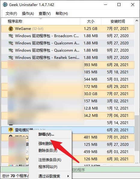 2.右击程序列表中的安卓模拟器程序。