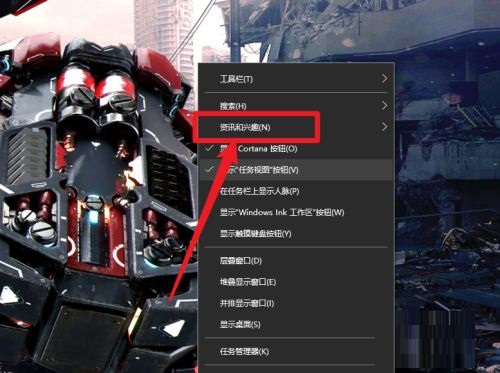 2.点击【资讯和兴趣】选项(如图所示)。
