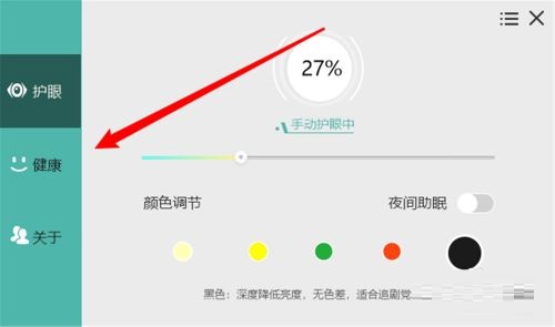 2.进到护眼宝界面,点击左侧“健康”,如下图。