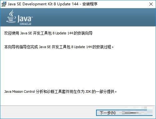 第一步:双击“jdk-8u144-windows-i586_8.0.1440.1.exe”进入JAVA运行环境安装界面,如下图所示: