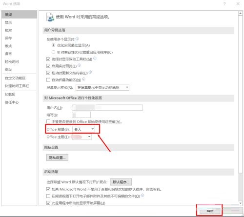 第六步:“office背景”更改为“春天”,点击“确定”即可(如图所示)。