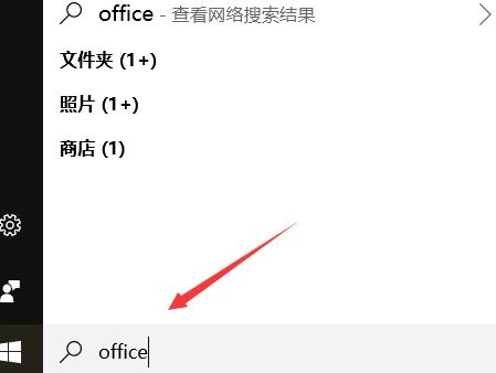 第一步:首先检查我们电脑上的office,在搜索框输入office(如图所示)。