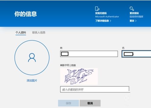 第五步:编辑“姓”“名”,输入验证码,点击“保存”(如图所示)。