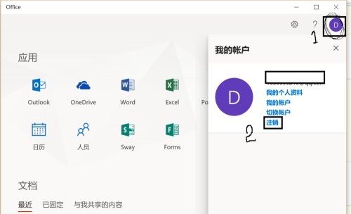第六步:最后重新登陆office,查看姓名是否更改。如仍未更改,点击右上角账户名字,点击“注销”,重新登陆,即可完成(如图所示)。