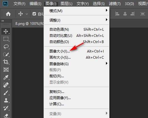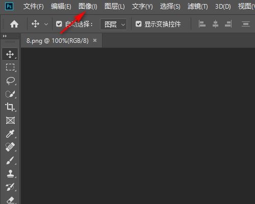 第二步:然后在Photoshop主工作区域点击图像(如图所示)。