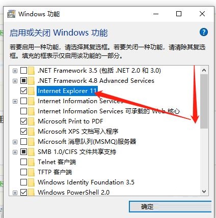 第五步:向下拖动右边滚动条,找到Internet Explorer 11(如图所示)。