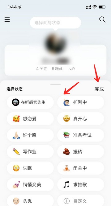 第三步:最后选择好网易云音乐的状态后,点击完成即可(如图所示)。