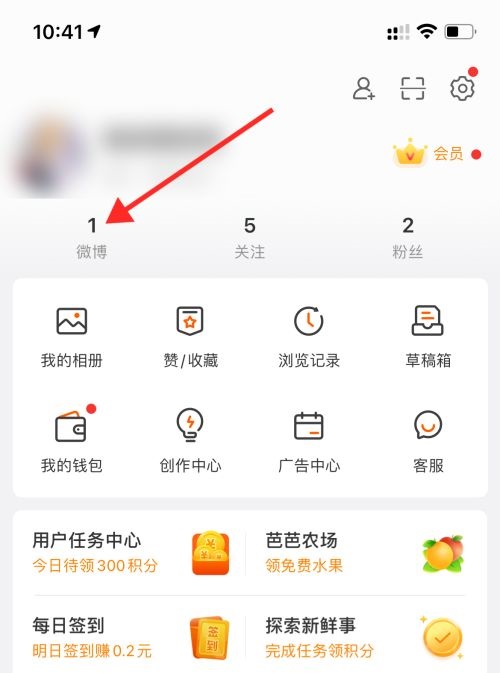 第一步:打开手机上的微博,在微博我的页面中选择之前发布的微博。