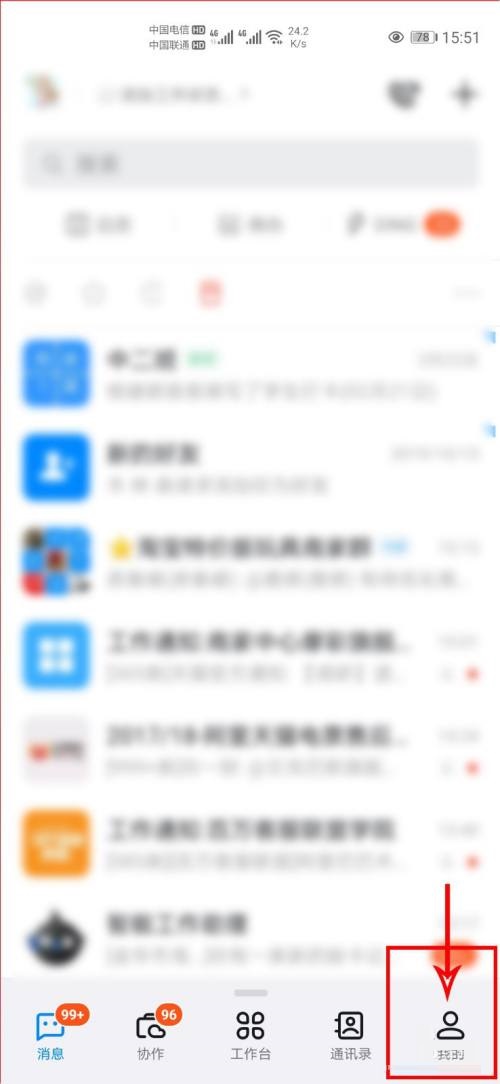 第二步:打开钉钉后,点击右下角【我的】(如图所示)。