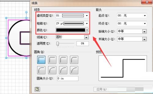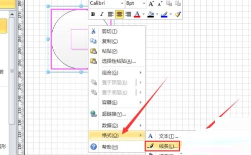 第三步:选中两个图形,单击鼠标右键,选择“形状”-“线条”选项,调整粗细和颜色如图所示。