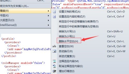 第五步:进行点击了高级的选项之后,进行点击下一级菜单选中为【删除水平空白】选项。