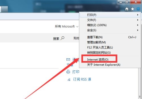 第二步:随后进入IE浏览器主页,点击设置,选择Internet选项(如图所示)。
