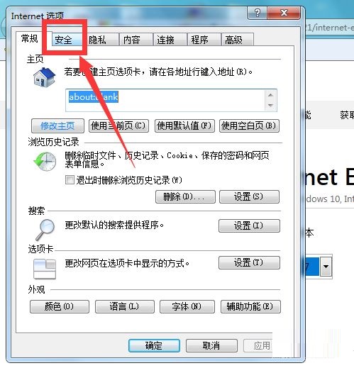 第三步:接着Internet选项处,选择属性栏里的安全(如图所示)。