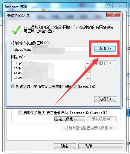 第四步:之后点击受信任的站点,选择站点(如图所示)。