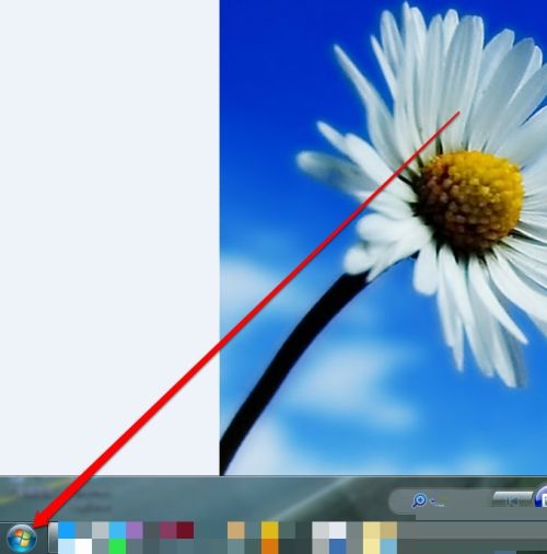 第一步:首先我们进入win7系统后,先在桌面的下方,点击开始按钮(如图所示)。