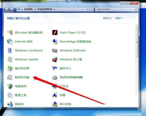 第三步:进入控制面板后,我们在控制面板中,找到控制和功能按钮(如图所示)。
