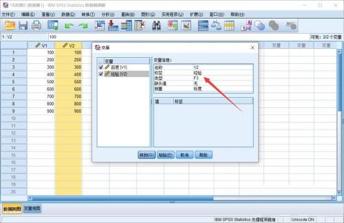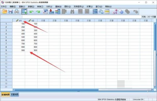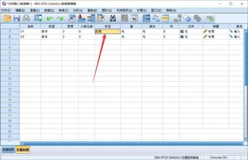 第一步:打开spss,输入数据,双击变量名称(如图所示)。