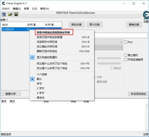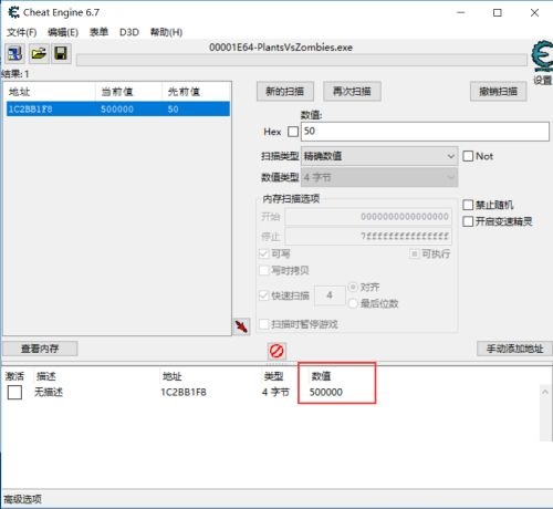 第二步:ait+tab切换到游戏,查看游戏内太阳数量。一开始是50个,先消灭,搞到25。ait+tab切换到ce修改器(如图所示)。