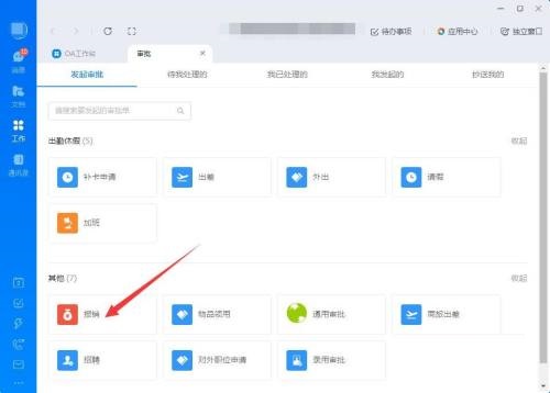第二步:进入到工作台后,在工作台中点击审批的功能按钮(如图所示)。