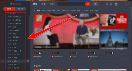第一步:打开央视影音播放器,并点击左侧的频道进入节目播放窗口(如图所示)。