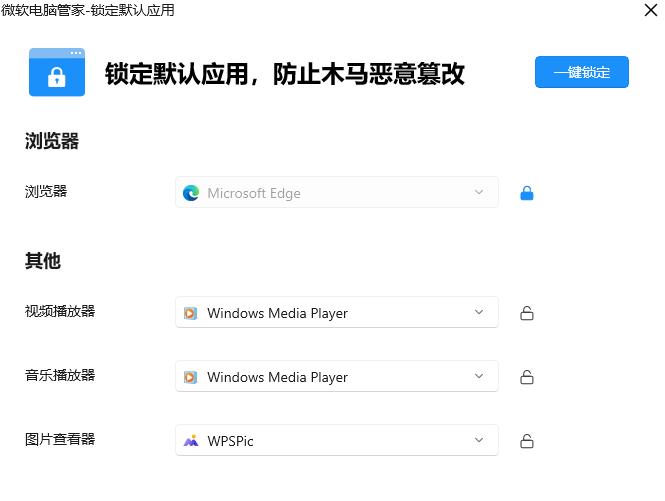 不过世超还是在这个看起来 “ 人畜无害 ” 的微软电脑管家,里找到了一些它夹带的 “ 私货 ” :微软电脑管家会建议你把浏览器设置成 edge 浏览器,然后把视频、音乐等播放器都锁定成 Windows 系统自带的。