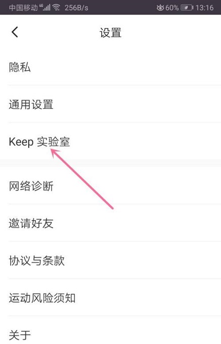 第四步:进入设置的页面选择“keep实验室”选项(如图所示)。