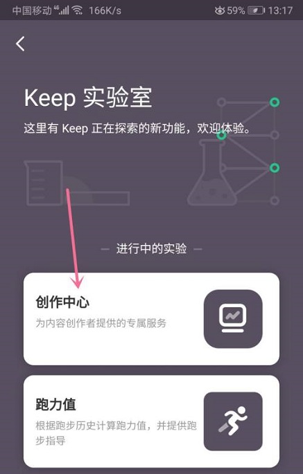 第五步:打开keep实验室的页面选择“创作中心”选项(如图所示)。
