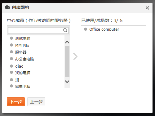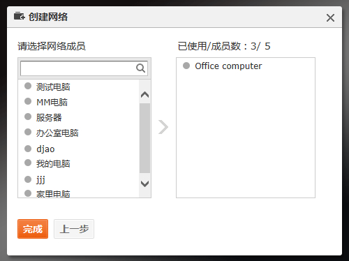 若选择对等网络,则需要选择网络成员后即可搭建成功。