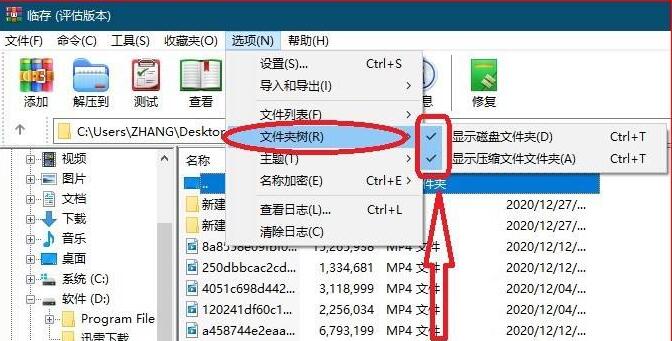 第二步,点击展开文件夹树,给“显示磁盘文件夹”和“显示压缩文件文件夹”打勾
