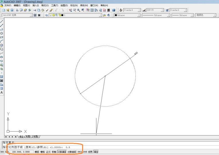 在命令栏中输入缩放的数值,如图,然后enter确认。