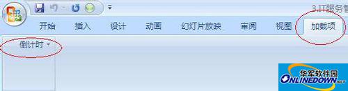 加载完成后,可以看到演示文稿上方多了一个“加载项”选项,点击此处可以对倒计时的时间进行设置。