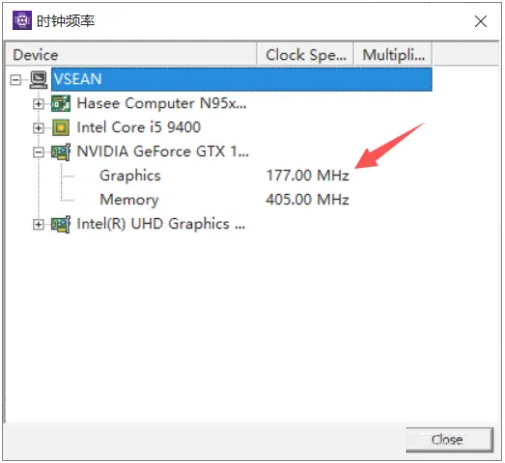 第四步:最后,在箭头所指的地方就可以查看独显的Graphics的频率。