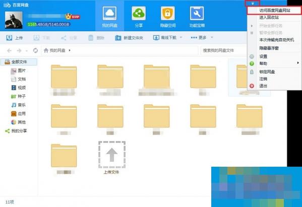 - 2、点击右上角【设置】按钮,点击进入【百度网盘网站】;