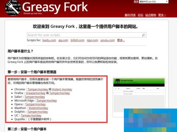 1.首先打开https://greasyfork.org/zh-CN ,然后安装一个用户脚本管理器;也可以参考:http://www.pc6.com/infoview/Article_115189.html,安装Tampermonkey油猴插件管理器