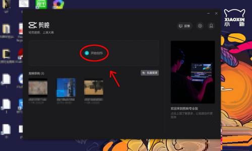 第一步:打开剪映,点击开始创作,进入剪映主页。