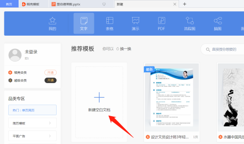 第二步:新建一页WPS。