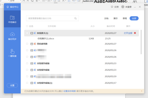 第五步:点击本地备份,查看WPS备份文件。